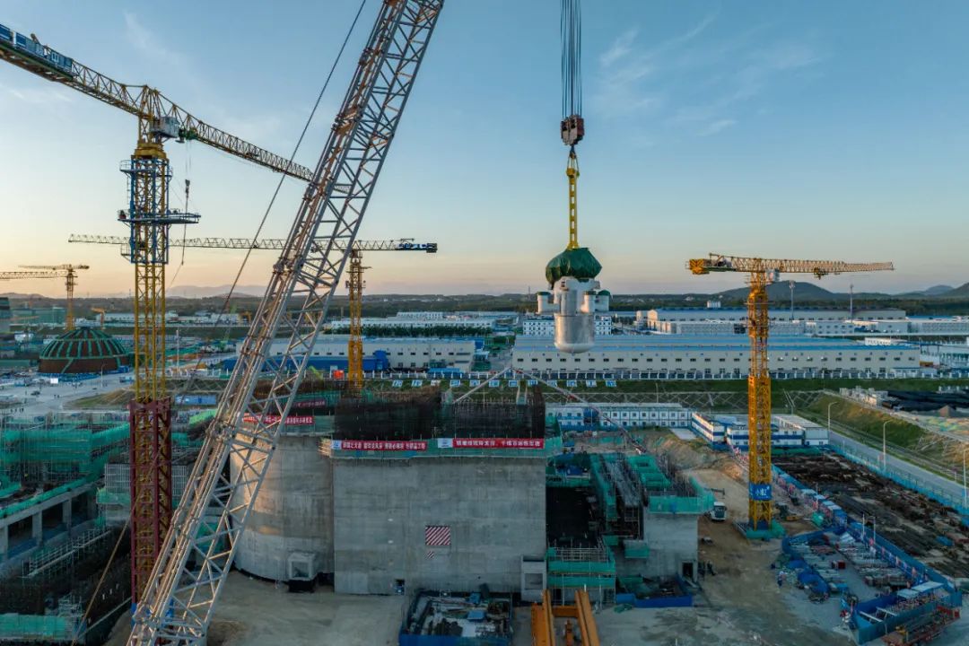 8月10日,現(xiàn)場一聲令下,中核集團(tuán)旗下中國核電投資控股中核海南多用途模塊式小型堆科技示范工程玲龍一號反應(yīng)堆核心模塊被高高吊起,向著核島方向移動。吊裝成功!壓力容器、蒸發(fā)器等關(guān)鍵設(shè)備一步到位,玲龍一號全球首堆的安裝工作步入高峰期。