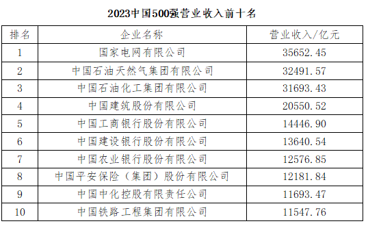 千億級企業(yè)首次超過50%,2023中國企業(yè)500強(qiáng)營業(yè)收入超過1000億元的企業(yè)數(shù)量增至254家,凈增10家。其中有16家企業(yè)營業(yè)收入超過1萬億元,國家電網(wǎng)、中國石油、中國石化營業(yè)收入超過3萬億元,中國建筑的營業(yè)收入超過了2萬億元。