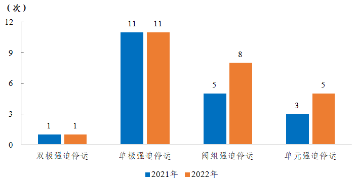 圖14 2021-2022年直流輸電系統(tǒng)強(qiáng)迫停運(yùn)次數(shù)