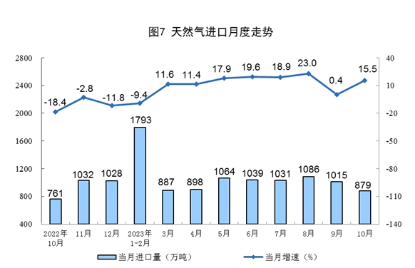 1—10月份,生產(chǎn)天然氣1896億立方米,同比增長6.1%。進(jìn)口天然氣9651萬噸,同比增長8.8%。