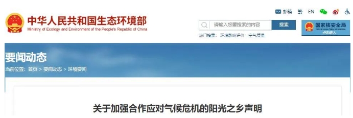 11月15日,生態(tài)環(huán)境部公布了中美關(guān)于加強合作應(yīng)對氣候危機的陽光之鄉(xiāng)聲明。