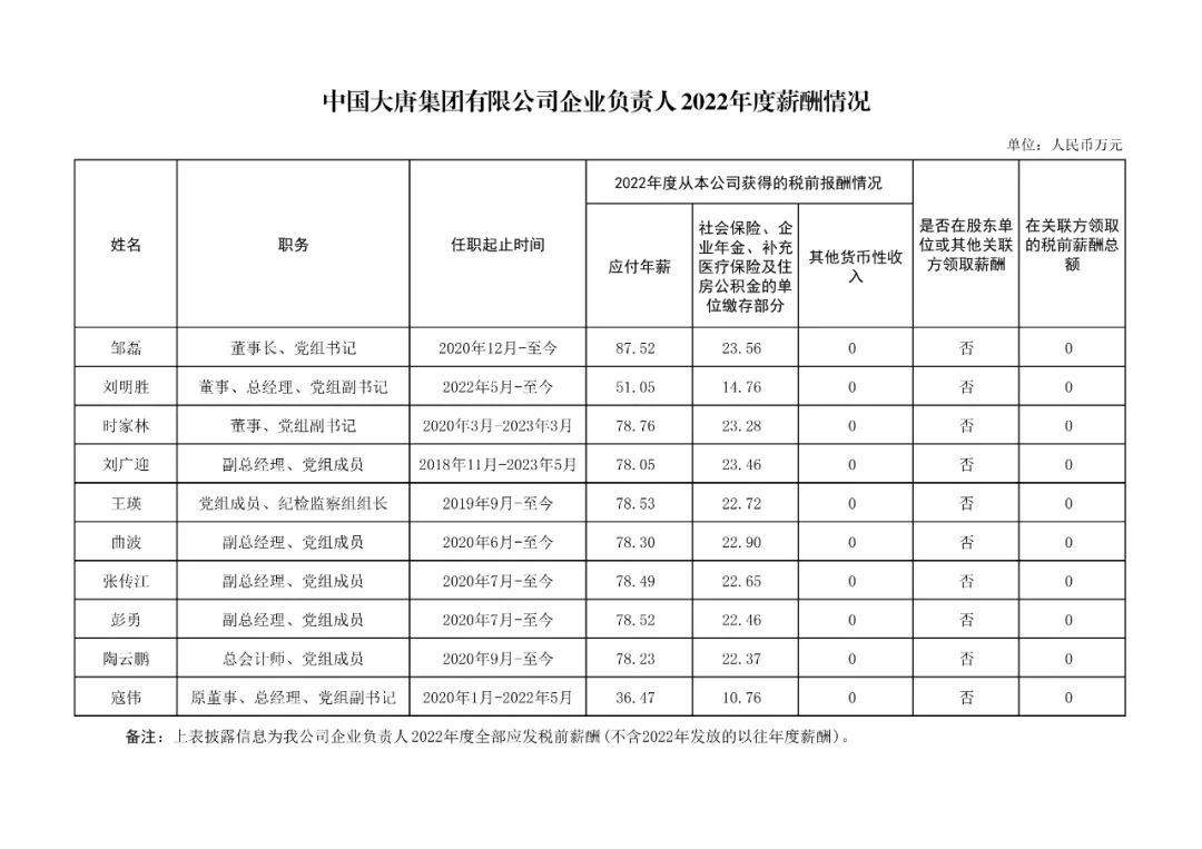 備注:上表披露信息為我公司企業(yè)負責(zé)人2022年度全部應(yīng)發(fā)稅前薪酬(不含2022年發(fā)放的以往年度薪酬)。