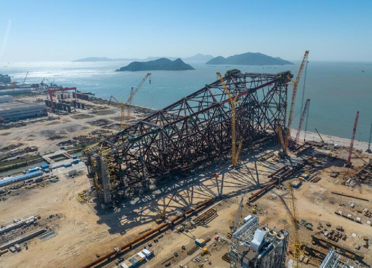 我國自主設(shè)計(jì)建造的深水導(dǎo)管架“海基二號(hào)”建設(shè)完工。“?;?hào)”導(dǎo)管架總高338米,總重達(dá)3.7萬噸,均刷新亞洲紀(jì)錄,將與“海洋石油122”共同服役于我國首個(gè)深水油田流花11-1/4-1油田,標(biāo)志我國海洋深水油氣裝備設(shè)計(jì)建造能力實(shí)現(xiàn)穩(wěn)步提升。