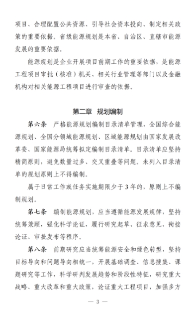能源規(guī)劃包括全國綜合能源規(guī)劃、全國分領(lǐng)域能源規(guī)劃、區(qū)域能源規(guī)劃和省、自治區(qū)、直轄市能源規(guī)劃(以下簡(jiǎn)稱省級(jí)能源規(guī)劃)等。設(shè)區(qū)的市級(jí)人民政府、縣級(jí)人民政府需要編制能源規(guī)劃的,按照省、自治區(qū)、直轄市人民政府的有關(guān)規(guī)定執(zhí)行。