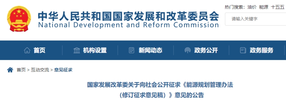 國家發(fā)展改革委關(guān)于向社會(huì)公開征求《能源規(guī)劃管理辦法