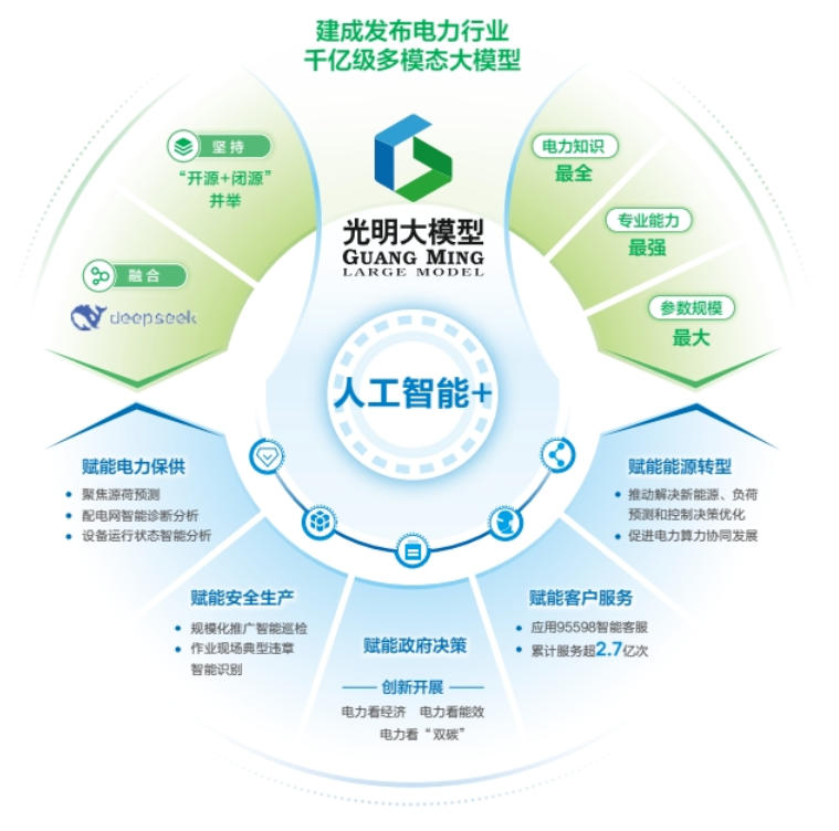 實(shí)施“人工智能+”專項(xiàng)行動(dòng),建成發(fā)布電力行業(yè)千億級多模態(tài)大模型——光明大模型。