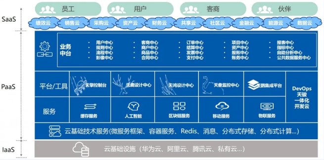 公司充分繼承原有的設(shè)計(jì)思想,從2018年開(kāi)始研發(fā)基于微服務(wù)架構(gòu)、業(yè)務(wù)中臺(tái)的新一代企業(yè)管理系統(tǒng),并于2020年正式成立業(yè)務(wù)中臺(tái)部負(fù)責(zé)業(yè)務(wù)中臺(tái)研發(fā)與管理,已建成用戶中心、發(fā)票中心、報(bào)表中心、影像中心等多個(gè)業(yè)務(wù)中臺(tái)。應(yīng)用架構(gòu)圖如下:
