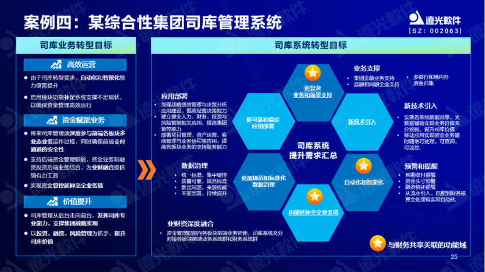某綜合性集團從2021年4月與遠光軟件攜手共建司庫管理系統(tǒng),以高效運營、資金賦能業(yè)務、價值提升為司庫業(yè)務轉型目標。考慮到集團業(yè)態(tài)復雜,系統(tǒng)被設計成更適用于復雜型的業(yè)務和場景支撐,同時融合應用新技術,可實現(xiàn)收款、付款、自動對賬、資金預警等業(yè)務的自動化、智能化處理。司庫系統(tǒng)充分對接前端各模塊業(yè)務群和財務系統(tǒng)群,有效推動了資金業(yè)務與前端業(yè)務的深度融合,在數(shù)據(jù)治理上也更為注重規(guī)范和標準化,在應用部署上統(tǒng)一部署,全業(yè)務覆蓋,從多個方面著手建設好司庫管理系統(tǒng)。