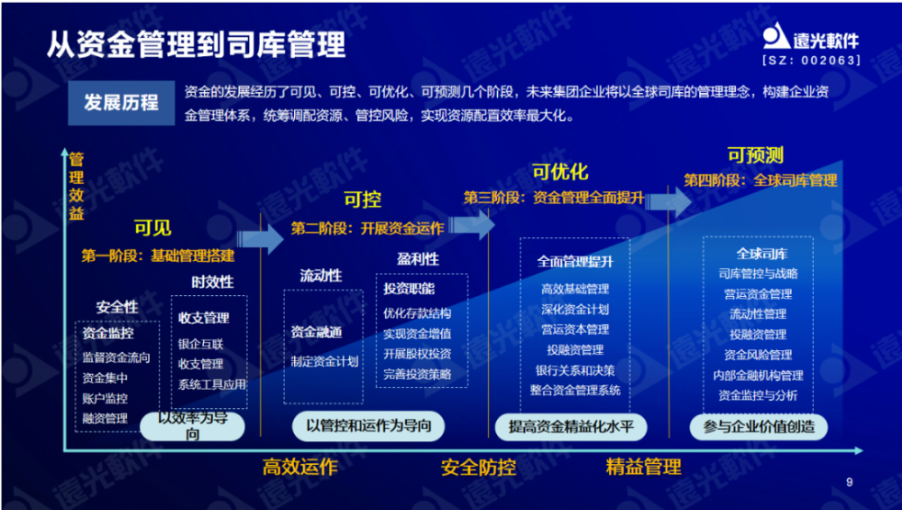 通過運用數(shù)字技術減少大量財務操作層面工作,財務人員核心重點將轉移至戰(zhàn)略層與分析層,將資金被動管理轉變?yōu)橹鲃庸芾?、超前管理,實現(xiàn)金融資源的可視、可控和增值。