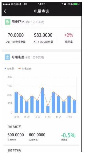 售電公司可在網(wǎng)上營業(yè)廳查詢客戶每月實(shí)際用電情況,安裝有計(jì)量采集系統(tǒng)的客戶還可以查看到每15分鐘一條的實(shí)際用電曲線,方便客戶了解自身用電情況,合理安排用電計(jì)劃,節(jié)省電費(fèi)開銷。