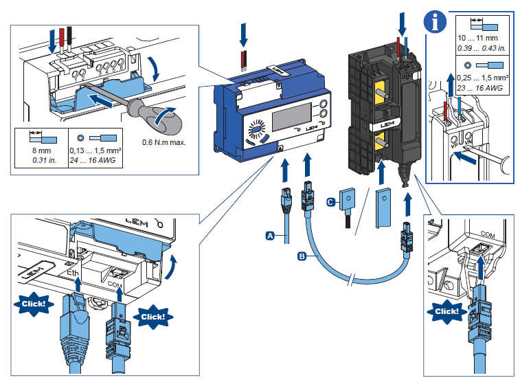 與常見的中國國標(biāo)電能表相比,萊姆智能電表DCBM采用了分體設(shè)計。一方面方便樁內(nèi)靈活安裝,另一方面也避免大電流發(fā)熱以及磁場對計量的影響。