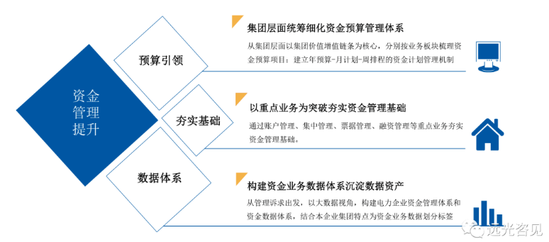 具體來說,建議從集團層面統(tǒng)籌細(xì)化資金預(yù)算管理體系,以預(yù)算為抓手逐步推動資金管理和資金業(yè)務(wù)數(shù)據(jù)顆粒度細(xì)化,在加強資金管控力度的同時為資金管理數(shù)字化轉(zhuǎn)型奠定管理基礎(chǔ)和數(shù)據(jù)基礎(chǔ)。