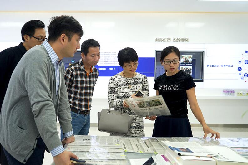 遠(yuǎn)光軟件子公司珠海遠(yuǎn)光移動(dòng)互聯(lián)科技有限公司總經(jīng)理王令將熱情接待了調(diào)研團(tuán)。在遠(yuǎn)光軟件展廳,沈寒英一行了解了公司的業(yè)務(wù)概況、產(chǎn)業(yè)布局、發(fā)展歷程和企業(yè)文化等,對(duì)遠(yuǎn)光軟件近年來在社會(huì)信息服務(wù)及企業(yè)管理領(lǐng)域的創(chuàng)新技術(shù)和應(yīng)用碩果表示肯定。