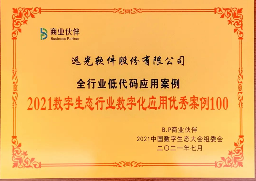 在國家“十四五”規(guī)劃以及2021政府工作報(bào)告中,數(shù)字生態(tài)首次被提升至國家戰(zhàn)略高度,在此背景下數(shù)字生態(tài)大會(huì)成為各領(lǐng)域及行業(yè)關(guān)注的焦點(diǎn)。作為數(shù)字生態(tài)大會(huì)的重磅內(nèi)容,“2021數(shù)字生態(tài)行業(yè)數(shù)字化應(yīng)用優(yōu)秀案例100” 榜單和獎(jiǎng)項(xiàng)的發(fā)布備受矚目,集中展示了2021年中國各個(gè)領(lǐng)域的優(yōu)秀企業(yè)在服務(wù)我國行業(yè)數(shù)字化轉(zhuǎn)型進(jìn)程中的一百個(gè)經(jīng)典、優(yōu)秀案例,旨在激發(fā)國內(nèi)數(shù)字生態(tài)體系創(chuàng)新活力與潛能。本次遠(yuǎn)光軟件“全行業(yè)低代碼應(yīng)用案例”入選榜單,是對遠(yuǎn)光軟件在數(shù)字生態(tài)建設(shè)與企業(yè)數(shù)字化轉(zhuǎn)型中的成功實(shí)踐和應(yīng)用價(jià)值的充分肯定。