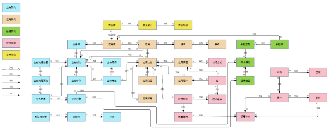架構(gòu)元模型是企業(yè)的標準、規(guī)范、指引,是進行架構(gòu)設(shè)計的基礎(chǔ)。架構(gòu)元模型包括架構(gòu)對象和對象關(guān)系,其中架構(gòu)對象決定架構(gòu)有哪些元素可以設(shè)計,是元模型的核心部分。