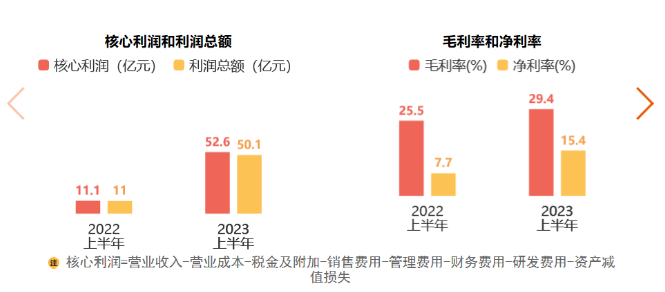 2023年上半年,公司毛利率為29.4%,相比去年同期的25.5%有所提升。公司凈利率高達15.4%,相比去年同期的7.7%也有明顯上揚。(下圖來自東方財富網(wǎng))