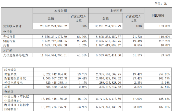 上半年,儲能系統(tǒng)營收為85.2274億元,占營收比重高達29.78%。