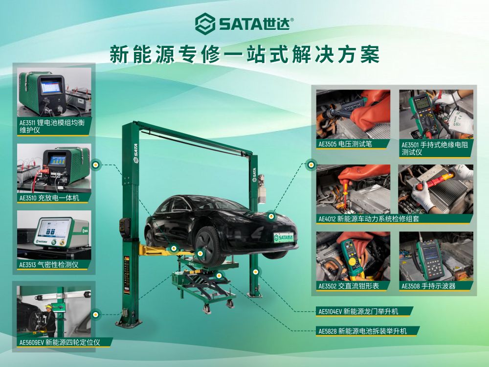 自2017年以來,SATA世達(dá)全品一站式解決方案,解決了用戶汽車維修保養(yǎng)的基本需求。而在新能源汽車崛起的現(xiàn)在,SATA世達(dá)更是緊跟行業(yè)步伐,推出了新能源汽車專屬解決方案,全套的新能源維修設(shè)備為用戶創(chuàng)造更高價(jià)值。