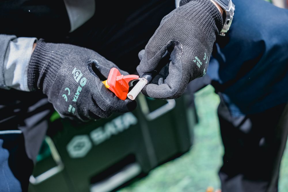 現(xiàn)場電力電網(wǎng)行業(yè)常見的配電箱模擬設(shè)備,吸引不少客戶前來體驗(yàn)SATA世達(dá)萬用表等儀器儀表設(shè)備檢測電流和電壓。除此以外,為了解決行業(yè)內(nèi)常見的戶外作業(yè)需求,VDE組套、電纜剪、剝線鉗和安全帽、絕緣安全鞋均有配備。