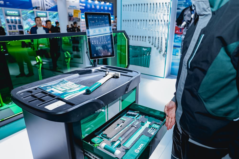現(xiàn)場,SATA世達(dá)為六大行業(yè)提供多樣工具產(chǎn)品并呈現(xiàn)智能存儲解決方案。