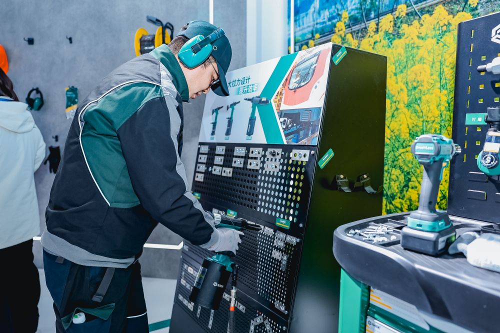 現(xiàn)場展出的1750Nm大扭力鋰電扳手,可以滿足軌道交通行業(yè)的公路段和高鐵基礎(chǔ)設(shè)施段的維修需要。一系列的風(fēng)動套筒可用于應(yīng)對地鐵例檢和架修。還有拉鉚槍產(chǎn)品,可以運(yùn)用于動車組的車廂裝配。