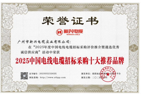 近日,在招投標(biāo)品牌調(diào)研公示服務(wù)平臺(tái)主辦的第四屆“2025年度中國(guó)電線電纜招標(biāo)采購(gòu)評(píng)價(jià)推介暨遴選優(yōu)秀誠(chéng)信供應(yīng)商活動(dòng)”中,新興電纜憑借卓越的產(chǎn)品質(zhì)量和技術(shù)實(shí)力,獲得五項(xiàng)行業(yè)重要認(rèn)可:"2025中國(guó)電力電纜供應(yīng)商綜合實(shí)力50強(qiáng)"、"2025中國(guó)民營(yíng)電線電纜企業(yè)10強(qiáng)"、"2025中國(guó)電線電纜招標(biāo)采購(gòu)十大推薦品牌"、"2025中國(guó)電力電纜十大品牌"和"2025中國(guó)電線電纜十大綠色品牌"。