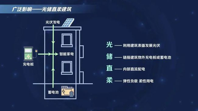 其次是住——建筑?,F(xiàn)在有個(gè)概念叫“光儲(chǔ)直柔建筑”,“光”指的是利用建筑的表面去發(fā)展光伏電,有研究表明,理論上如果把全北京的屋頂都裝上光伏電,獲得的電能可能是北京市用電量的2倍。“儲(chǔ)”就是建筑物里可以鏈接建筑物外充電樁或蓄電池。“直”是內(nèi)部直流配電。“柔”是彈性負(fù)載、柔性用電,直流和交流用電會(huì)有15%左右效率的提升,同時(shí)如果用了柔性用電系統(tǒng),建筑在用電上會(huì)有15%-30%的調(diào)節(jié)能力,所以在適應(yīng)未來高比例的風(fēng)電、光伏電的時(shí)候,會(huì)成為非常重要的系統(tǒng)。如果是典型的住宅建筑和辦公建筑群的組合,它可以消納近百公里范圍的光伏電,春夏秋三季基本可以實(shí)現(xiàn)供電平衡,冬季因?yàn)橛泄┡枰?,供電量?huì)有缺口。柔性用電是充分利用風(fēng)、光這些非化石可再生資源。