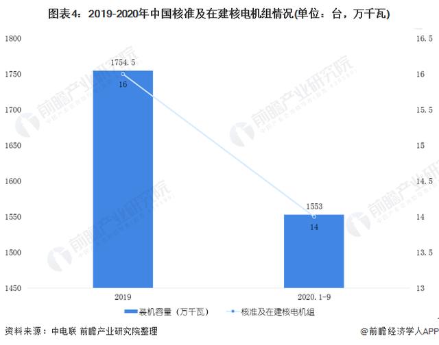 根據(jù)中電聯(lián)的數(shù)據(jù)顯示,截至2019年底,我國(guó)核準(zhǔn)及在建核電機(jī)組16臺(tái),裝機(jī)容量1754.5萬(wàn)千瓦,位居世界第一。而截止到2020年9月底,在建核電機(jī)組14臺(tái),總裝機(jī)容量1553萬(wàn)千瓦。