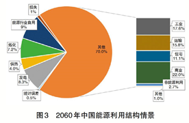 決定碳排放的第二個因素是能源清潔水平,而能源清潔水平是由非化石能源發(fā)展決定的。非化石能源(水、核、風(fēng)、光等)主要以電能形式被利用,到2060年將作為主要的能源品種用于社會生產(chǎn)生活,預(yù)計將占能源消費總量的80%以上(見圖4),客觀上決定了未來以清潔電力為中心的高電氣化能源利用格局,同時也表明電力系統(tǒng)深度脫碳對碳中和目標的重要作用。而非完全電氣化部門,例如少數(shù)工業(yè)過程(采礦、鋼鐵、水泥、化工等部分生產(chǎn)環(huán)節(jié))、交通部門(長距離貨運、遠洋航運和航空等),盡管生產(chǎn)能耗顯著降低,但部分生產(chǎn)環(huán)節(jié)仍需一定量的化石能源,難以實現(xiàn)完全脫碳,意味著仍會有一定數(shù)量的與能源相關(guān)的二氧化碳排放。這部分二氧化碳需要由碳匯來中和。碳匯主要包括自然碳匯(自然生態(tài)系統(tǒng)固碳)和技術(shù)碳匯(碳捕獲與儲存技術(shù),CCS)。2016年我國森林碳匯達到每年5-6億噸水平;有研究顯示,2010-2016年中國陸地生態(tài)系統(tǒng)碳匯年均11.1±3.8億噸,未來自然碳匯會小幅增加但很難實現(xiàn)翻倍增長。預(yù)計2060年我國能源相關(guān)碳排放降至14億噸,若加上非能源類碳排放,無法完全依靠自然碳匯實現(xiàn)碳中和,還需發(fā)展技術(shù)碳匯。