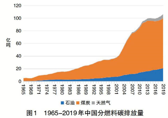 我國基礎(chǔ)設(shè)施建設(shè)和長期以來的經(jīng)濟增長結(jié)構(gòu)使得能源密集型重工業(yè)依然占據(jù)相當(dāng)大的增加值比重,而資源稟賦決定了我國煤炭主導(dǎo)的能源結(jié)構(gòu)。在過去的二十年里,我國高能源強度、高碳密度的發(fā)展軌跡使得二氧化碳排放量增長了兩倍以上(如圖1所示)。我國提出碳中和目標,不僅是將碳約束內(nèi)生在能源清潔高效發(fā)展過程中,更是要求實現(xiàn)社會經(jīng)濟全鏈式轉(zhuǎn)型升級。具體來講,到2060年,影響碳排放的主要部門要分別實現(xiàn):電力部門深度脫碳甚至負排放、工業(yè)部門工藝流程創(chuàng)新大幅降低碳排放、交通部門電動化與生物燃油化、建筑部門高度清潔化。