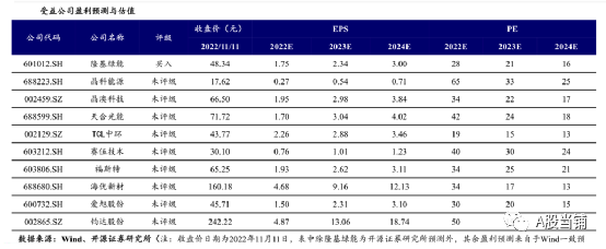 2023年硅料瓶頸解決,價格回落有望向下游讓利,關(guān)注硅料下游盈利有望增厚。受益技術(shù)變化,TOPCon放量,相關(guān)企業(yè)盈利有望增長,相關(guān)輔材,比如POE粒子,受益于供需緊張有望量價齊升。