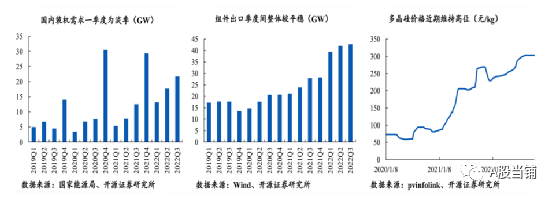 1、國內(nèi)一季度往往為需求淡季,環(huán)比往往會有一定幅度下滑,考慮部分年底并網(wǎng)量第二年一季度安裝以及1.2容配比,預(yù)計2023年一季度組件實(shí)際需求不超過40GW。