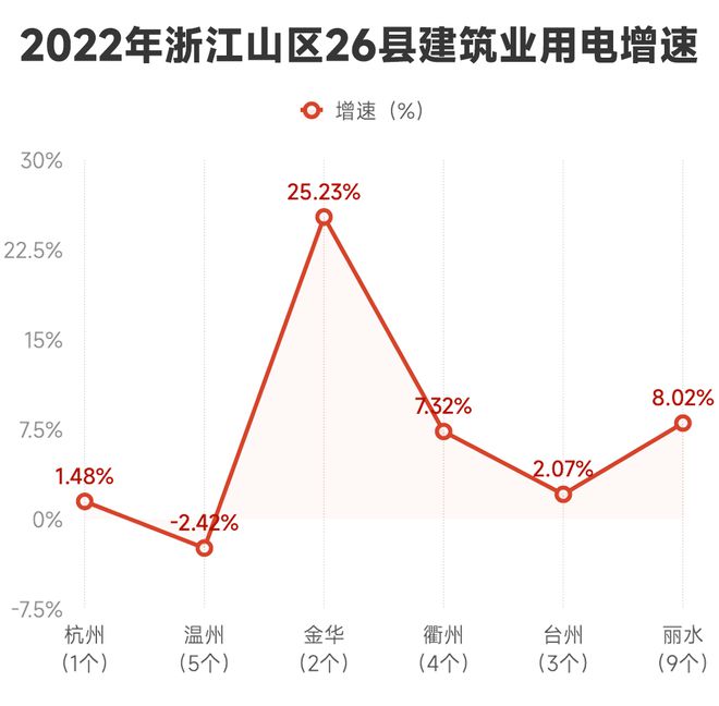 2022年,全省建筑業(yè)用電量為102.64億千瓦時(shí),同比下降1.75%。山區(qū)26縣全年建筑業(yè)用電量12.08億千瓦時(shí),同比增長(zhǎng)3.82%,增速高于全省平均水平,實(shí)現(xiàn)了逆勢(shì)增長(zhǎng)。這是浙江推進(jìn)山海協(xié)作,加快補(bǔ)齊山區(qū)縣域交通基礎(chǔ)設(shè)施、新型城鎮(zhèn)化建設(shè)短板,在電量上的正向體現(xiàn)。