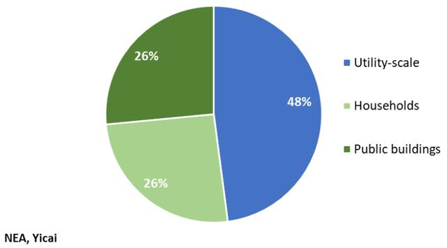大多數(shù)今年安裝的太陽能發(fā)電裝置來自于小型項目,這些項目將太陽能板置于公共建筑和私人住宅的屋頂上。2021年7月,國家能源局要求至少一半的政府辦公樓、40%的學(xué)校和醫(yī)院、30%的商業(yè)和工業(yè)建筑,以及20%的農(nóng)村住宅安裝太陽能電池板。