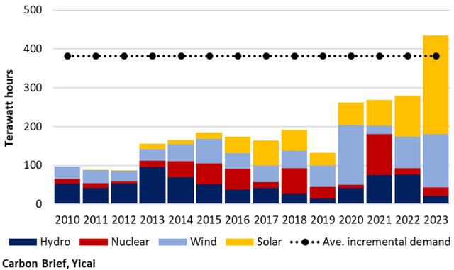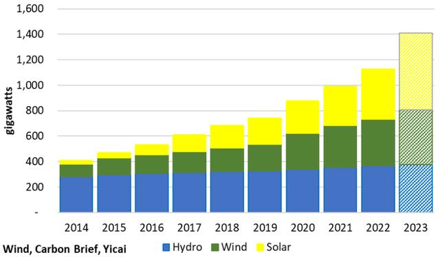 圖2:中國水電、風(fēng)電和太陽能發(fā)電量(單位:千兆瓦)