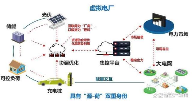 虛擬電廠(virtual power plant,簡稱VPP)是通過先進(jìn)信息通信技術(shù)和軟件系統(tǒng),實現(xiàn)分布式電源、儲能系統(tǒng)、可控負(fù)荷、電動汽車、充電樁等分布式能源的聚合和協(xié)調(diào)優(yōu)化,以作為一個特殊電廠參與電力市場和電網(wǎng)運行的電源協(xié)調(diào)管理系統(tǒng)。虛擬電廠并不是真實存在的電廠,而是一種智能電網(wǎng)技術(shù),應(yīng)用分布式電力管理系統(tǒng)參與電網(wǎng)運行調(diào)度,實現(xiàn)“源-荷-網(wǎng)”聚合優(yōu)化。