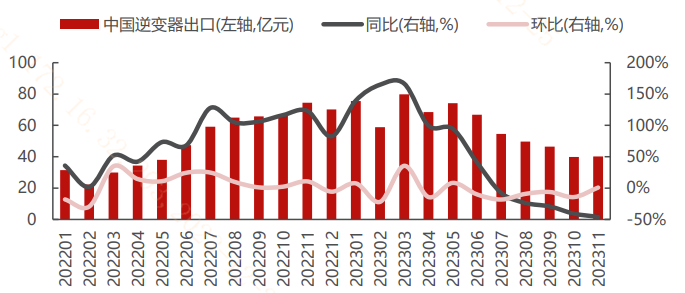 圖:我國逆變器出口金額(億元)(信息來源:民生證券)