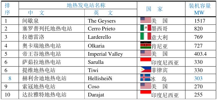 地熱裝機容量最大的國家(MW)
