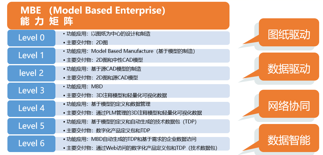 數(shù)字化轉(zhuǎn)型的過程,也就是消滅圖紙的過程,從二維圖紙驅(qū)動(dòng),慢慢變成數(shù)據(jù)驅(qū)動(dòng),企業(yè)要有三維數(shù)據(jù),要有MBD,再往前走就是網(wǎng)絡(luò)協(xié)同,最后向數(shù)據(jù)智能過渡。
