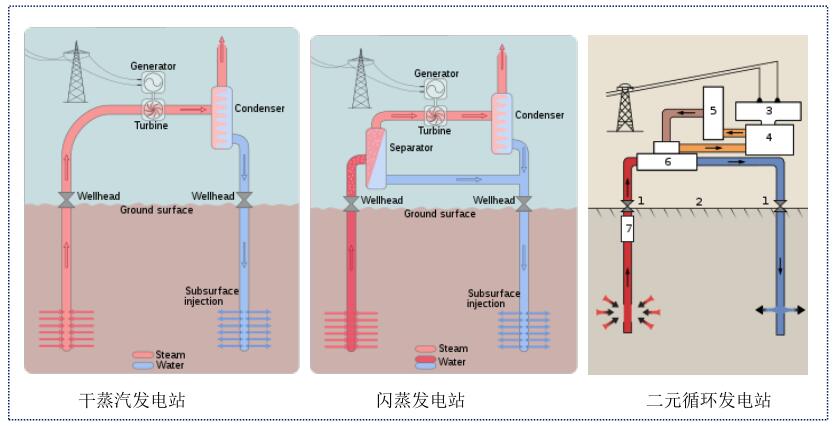 地?zé)岚l(fā)電站與其他蒸汽輪機(jī)熱力發(fā)電站相似,由燃料源(在地?zé)岬那闆r下是地球的核心)產(chǎn)生的熱量用于加熱水或其他工作流體。然后,使用工作流體來(lái)轉(zhuǎn)動(dòng)發(fā)電機(jī)的渦輪,從而產(chǎn)生電力。然后,流體被冷卻并返回到熱源。地?zé)岚l(fā)電站分為三種類型:干蒸汽發(fā)電站、閃蒸電站和二元循環(huán)發(fā)電站。