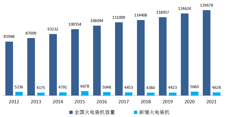 圖9 2012~2021年火電裝機(jī)和新增裝機(jī)情況(單位:萬(wàn)千瓦)