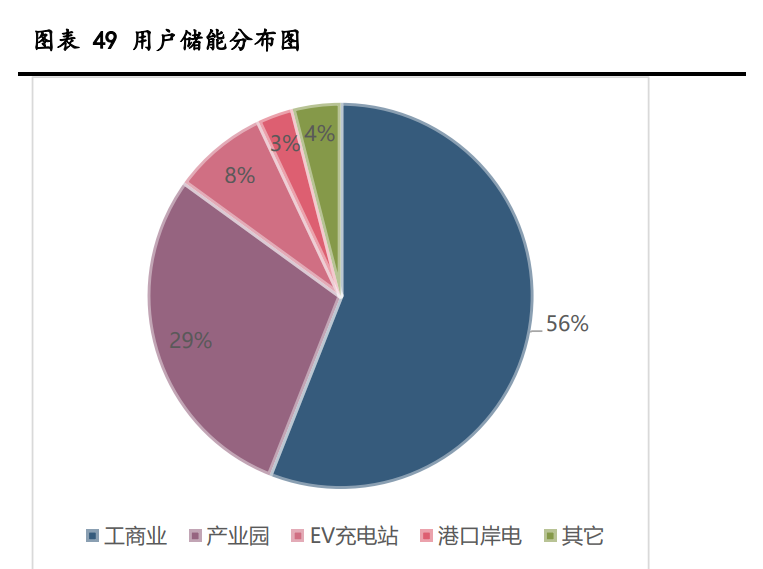 國內(nèi)用戶側(cè)儲能以工商業(yè)和產(chǎn)業(yè)園為主。2021 年國內(nèi)新型儲能中用戶側(cè)儲能占比 達到 24%,重要性愈發(fā)凸顯,細分應(yīng)用場景來看,國內(nèi)工商業(yè)和產(chǎn)業(yè)園占據(jù)了絕對主力, 合計占比超過 80%,是用戶側(cè)應(yīng)用的主流用途。