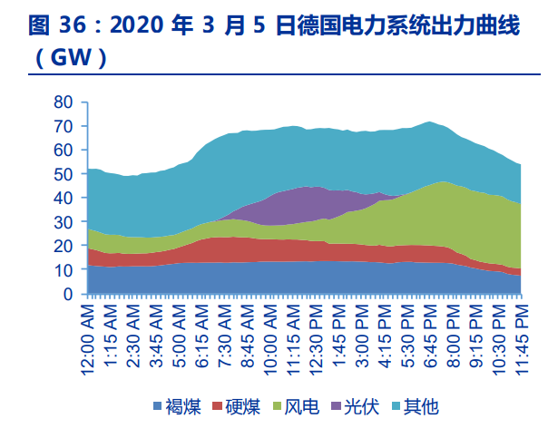 煤電是當(dāng)前潛力最大的靈活性資源之一。截止 2022 年底我國煤電裝機(jī)已突破 12 億千 瓦,后續(xù)仍將保持一定規(guī)模的建設(shè)。但我國煤電靈活性較差,純凝機(jī)組不經(jīng)過改造最低出 力一般只有額定容量的 50%左右,熱電聯(lián)產(chǎn)機(jī)組在供熱期則更差。如果通過改造將最低出 力降低至 25%則可以釋放出僅 5 億千瓦調(diào)節(jié)能力,大約相當(dāng)于 250GW 抽水蓄能,是現(xiàn)存 抽蓄調(diào)節(jié)能力的 5 倍。德國 2021 年煤電利用小時數(shù) 3664 小時,其中硬煤 4980 小時,褐 煤 2346 小時,中國 2022 年利用小時數(shù)達(dá)到近 4700 小時,仍有進(jìn)一步下降空間;(2) 以日內(nèi)波動來看,德國 2020 年 3 月 5 日晚間風(fēng)電出力大幅增加,從午間約 7GW 大幅增 加至晚間超過 28GW,硬煤發(fā)電迅速從最高 10.7GW 調(diào)減至不足 3GW,日內(nèi)壓低負(fù)荷到 30%以下,為新能源消納做出巨大貢獻(xiàn)。
