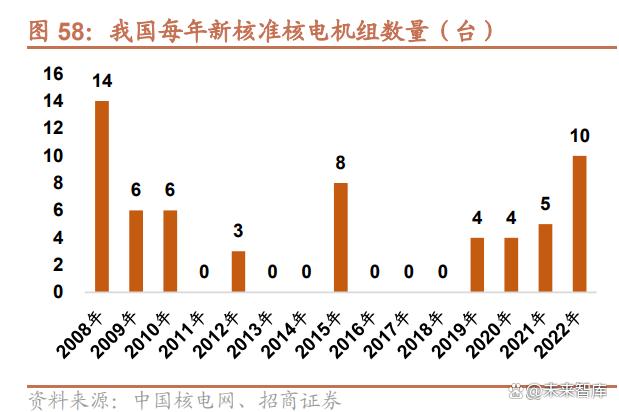 量:根據(jù)“十四五“規(guī)劃,2025 年我國(guó)在運(yùn)+在建核電裝機(jī)容量將超過 100GW。“十四五”現(xiàn)代能源體系規(guī)劃 提出,在確保安全的前提下,積極有序推動(dòng)沿海核電項(xiàng)目的建設(shè),保持平穩(wěn)建設(shè)節(jié)奏,合理布局新增沿海核電項(xiàng) 目。開展核能綜合利用示范,積極推動(dòng)高溫氣冷堆、快堆、模塊化小型堆、海上浮動(dòng)堆等先進(jìn)堆型示范工程,推 動(dòng)核能在清潔供暖、工業(yè)供熱、海水淡化等領(lǐng)域的綜合利用。切實(shí)做好核電廠址資源保護(hù)。據(jù)中國(guó)核能協(xié)會(huì)及有 關(guān)機(jī)構(gòu)預(yù)測(cè),到 2025 年,我國(guó)核電在運(yùn)裝機(jī)規(guī)模將達(dá)到 7000 萬千瓦左右,在建裝機(jī)規(guī)模接近 4000 萬千瓦; 到 2035 年,我國(guó)核電在運(yùn)和在建裝機(jī)容量將達(dá)到 2 億千瓦左右,發(fā)電量約占全國(guó)發(fā)電量的 10%左右。未來 15 年仍是我國(guó)核電發(fā)展的重要戰(zhàn)略機(jī)遇期。