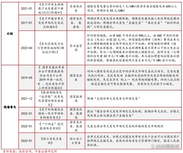 多形式扶持政策結合,鼓勵工商業(yè)儲能發(fā)展。為加快工商儲的滲透率,盡早實現(xiàn)商業(yè)化,國家和省市層 面均出臺了輔助服務、補貼、隔墻售電政策,為運營商創(chuàng)造多層次的盈利渠道。輔助服務方面,我國電 力輔助服務市場中交易品種包括調峰、調頻、無功調節(jié)、備用和黑啟動等,近年來儲能和可調節(jié)負荷也 納入了提供輔助服務的市場主體之中;補貼方面,如今年 4 月東北監(jiān)管局連發(fā)兩文明確新型儲能各類補 償:針對新型儲能,如果 AGC 可用率達到 98%以上,按 AGC 可用時間每臺次(電站)補償 20 元/時; 隔墻售電方面,浙江省于 2023 年 1 月 1 日起實施最新電力條例:分布式發(fā)電企業(yè)可以與周邊用戶按照 規(guī)定直接交易。