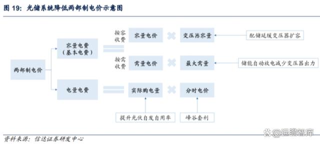 4)擴大兩部制電價工商業(yè)范圍,增加需量管理需求。第三輪輸配電價改革擴大了兩部制電價執(zhí)行范圍,對于用電容量在 100-315kVA 的工商業(yè)用戶,可選擇執(zhí)行兩部制電價;用電容量在 315kVA 及以上的工商業(yè)用戶,執(zhí)行兩部制電價,現(xiàn)執(zhí)行單一制電價的用戶可選擇執(zhí)行單一制電價或兩部制電價。容量電費(基本電費)按用戶變壓器容量(按容收費)或運行的最大需要量(按需收費)計算,電量電費按用戶實際購電量計算。工商業(yè)用戶因此增加精細(xì)化管理電費的需求,比如安裝光儲系統(tǒng)可以同時降低容量電費與電量電費,節(jié)省用電支出。精細(xì)化管理需要布局能量管理系統(tǒng),也為虛擬電廠的建設(shè)奠定基礎(chǔ)。