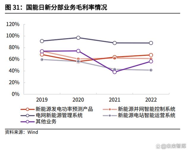 發(fā)電功率預(yù)測產(chǎn)品收入規(guī)模持續(xù)提升,新產(chǎn)品(電力交易、儲能、虛擬電廠)2022年實(shí)現(xiàn)突破。新能源發(fā)電功率預(yù)測產(chǎn)品作為公司的絕對優(yōu)勢產(chǎn)品,在營業(yè)收入中的占比始終維持高位,2022年該板塊營業(yè)收入同比增長30.49%至2.60億元,占營業(yè)收入比例提升至72.21%,毛利率同比提升3.64個(gè)pct至67.50%。此外,公司在2022年持續(xù)發(fā)力新產(chǎn)品市場開拓,三大新產(chǎn)品(電力交易、儲能、虛擬電廠)2022年實(shí)現(xiàn)營業(yè)收入1106萬元,同比高增93%,毛利率高達(dá)71.70%。