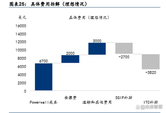 NEM 3.0:平均電力回購價格預(yù)計下降 75%,補貼下降反提升戶儲安裝經(jīng)濟性。據(jù)加州太 陽能和儲能公司(CALSSA)協(xié)會報道,NEM 3.0 協(xié)議將導(dǎo)致加州的平均太陽能電力回購 價格從度電 0.30 美元下調(diào)至 0.08 美元,相當于 75%的下降。在此基礎(chǔ)上,根據(jù) Energysage 和 NEM 3.0 提案的預(yù)測,在 NEM 3.0 政策下僅購買戶用光伏設(shè)備的回本周期將由原來的 5-6 年延長到 9 年左右。NEM 3.0 對于家庭用光伏的支持力度大大削減,而儲能的經(jīng)濟性得 以體現(xiàn)。由于基礎(chǔ)電價隨著一天中時間不同而變化,安裝戶儲意味著用戶可以在回購電價 低的時候儲存多余的電量,在電價高的時候向電網(wǎng)回輸電力,波動性增加帶來經(jīng)濟性提升。 據(jù) NEM 3.0提案預(yù)測,安裝戶儲的回本周期最低可達 6.98年,低于僅安裝光伏的回本周期, 配儲經(jīng)濟性體現(xiàn),我們預(yù)計 2023 年 4 月后安裝的戶用光伏配儲比例將得到較大幅度提升。