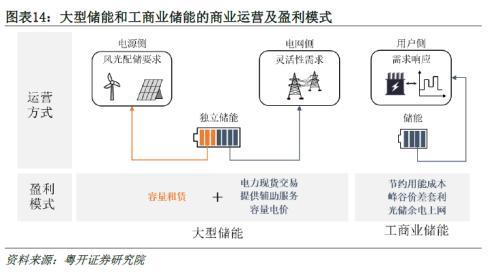 成本下降的同時(shí),大儲(chǔ)和工商業(yè)儲(chǔ)能的盈利模式也日益清晰,大儲(chǔ)可通過(guò)共享租賃、現(xiàn)貨市場(chǎng)套利、提供輔助服務(wù)和獲取容量電價(jià)盈利,工商業(yè)儲(chǔ)能通過(guò)峰谷價(jià)差套利以及節(jié)約用能成本盈利。
