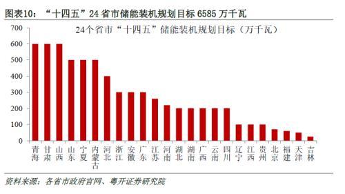 裝機(jī)規(guī)劃目標(biāo)躍升,新型儲(chǔ)能進(jìn)入發(fā)展“快車(chē)道”。進(jìn)入“十四五”以來(lái),國(guó)家及地方密集發(fā)布儲(chǔ)能政策。2021年7月,國(guó)家發(fā)改委、國(guó)家能源局發(fā)布的《關(guān)于加快推動(dòng)新型儲(chǔ)能發(fā)展的指導(dǎo)意見(jiàn)》指出,到2025年實(shí)現(xiàn)新型儲(chǔ)能裝機(jī)3000萬(wàn)千瓦以上。2022年以來(lái),廣東、青海、甘肅等26省市提出“十四五”新型儲(chǔ)能裝機(jī)目標(biāo),合計(jì)規(guī)劃裝機(jī)6585萬(wàn)千瓦,遠(yuǎn)超3000萬(wàn)千瓦的裝機(jī)目標(biāo),新型儲(chǔ)能已進(jìn)入快速增長(zhǎng)的發(fā)展階段。